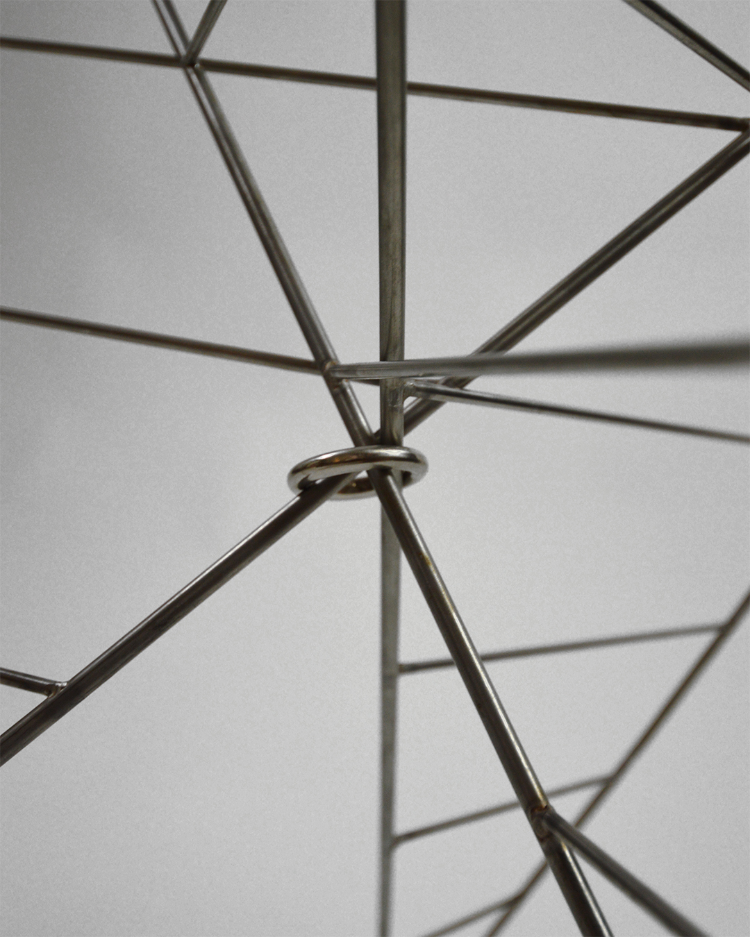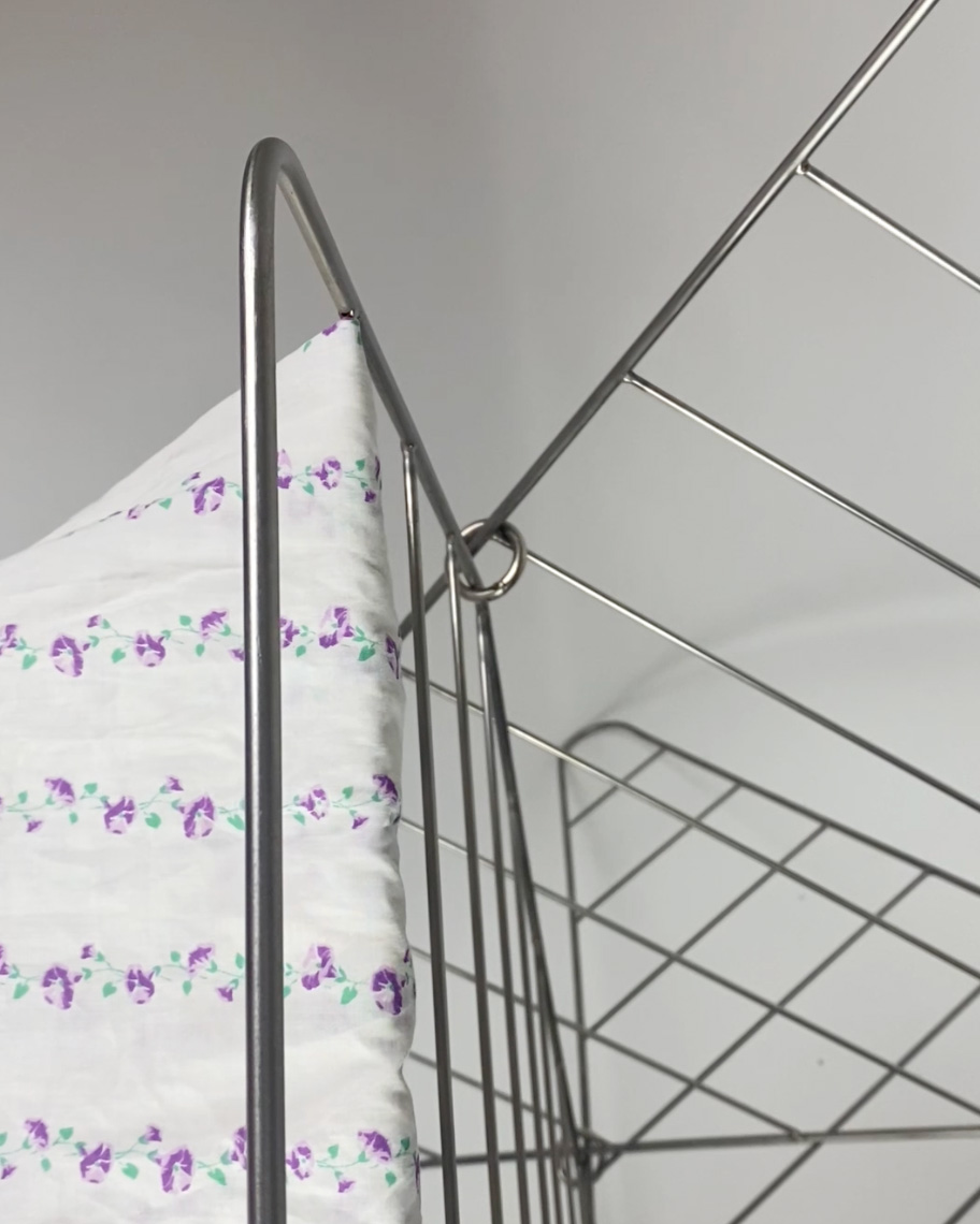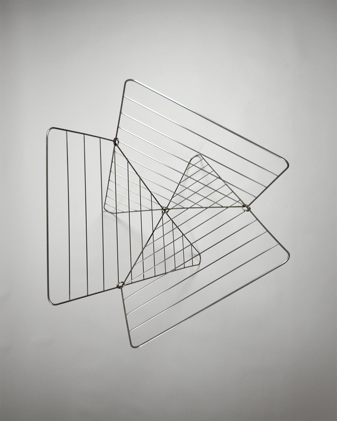 A sculptural presence, standing gracefully even when not in use. Folds with a single gesture and carries the weight of a 6 kg wash (33 meters of clothes). Handmade in Belgium by Lucien Van den Berge. Designed by Eve Wolfs.